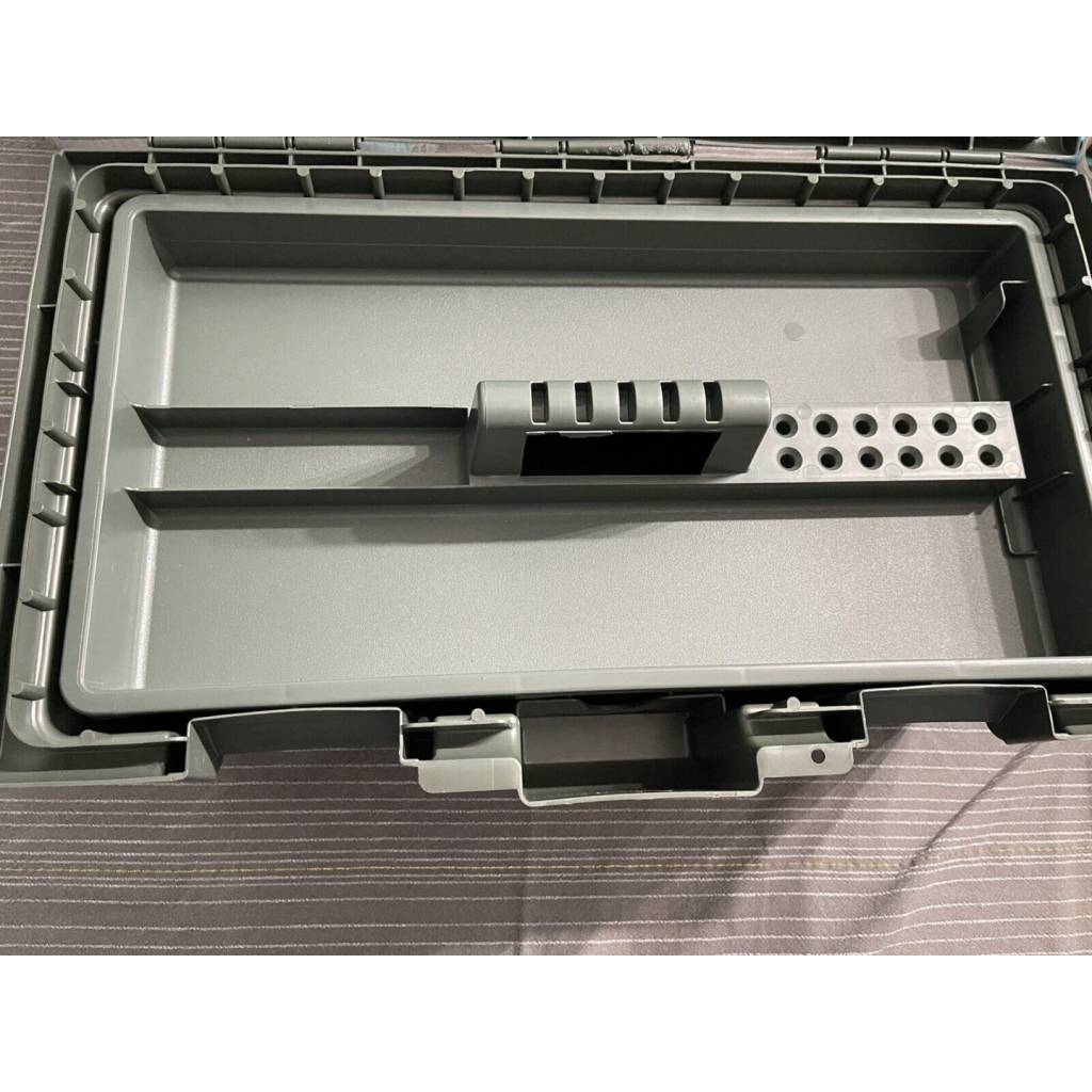 Tiene 2 compartimentos separados, siendo la bandeja superior extraíble que es perfecta para guardar todos sus suministros de limpieza, como aceites para armas, cepillos, disolventes, etc.