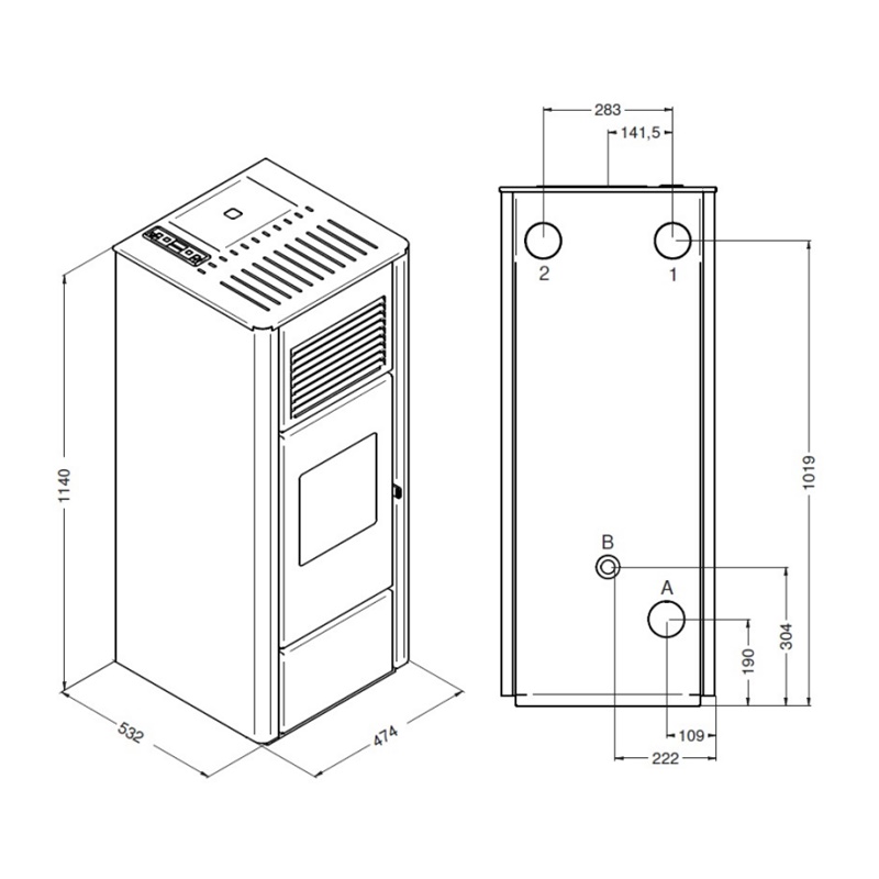 - Consumo de pellet máx: 3,4 kg/h (mín 0,9 kg/h).