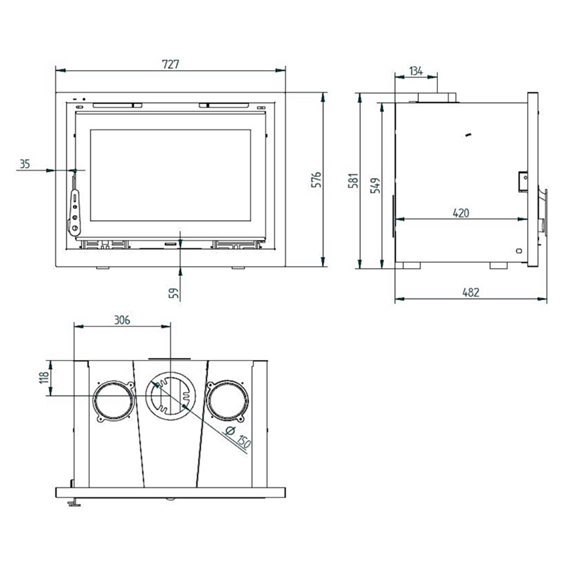Calefactor inserto FM (España) a Leña I-170 12,5 kW Doble Combustión