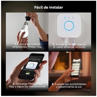 Puedes conectar hasta 50 bombillas y 10 accesorios al puente hue de Philips (incluido).