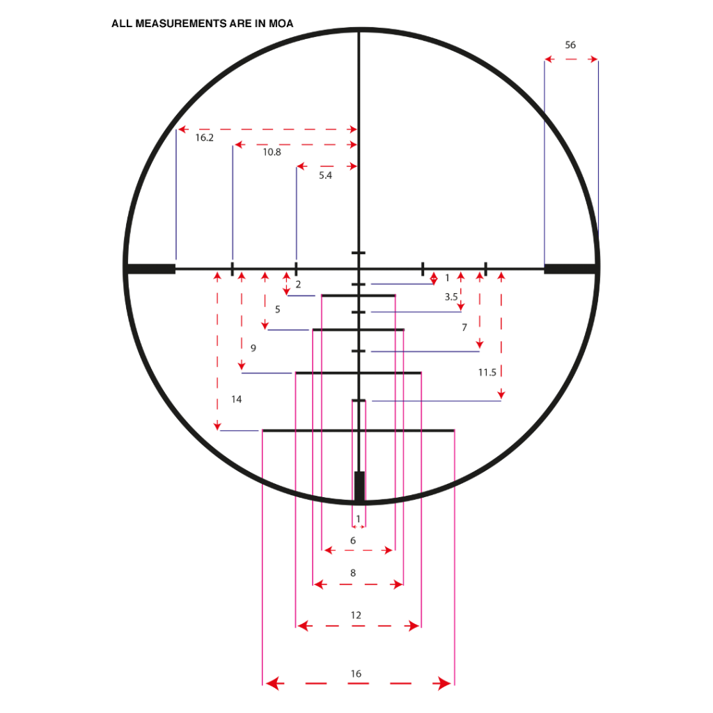 Valor del Click á 100m: 1/8 M.O.A. (3,4mm)