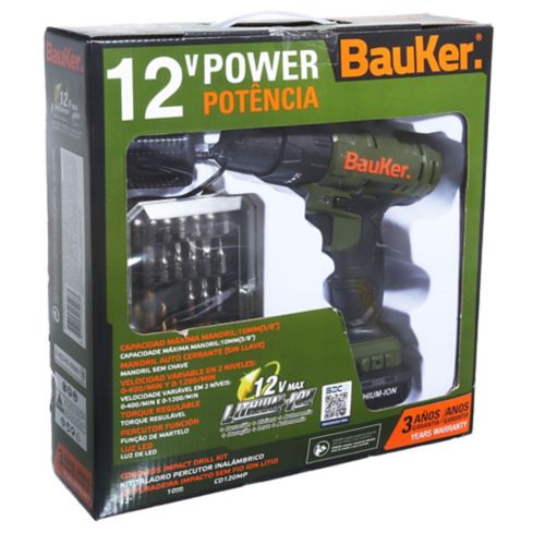 Set taladro atornillador 12 v con 29 piezas Bauker